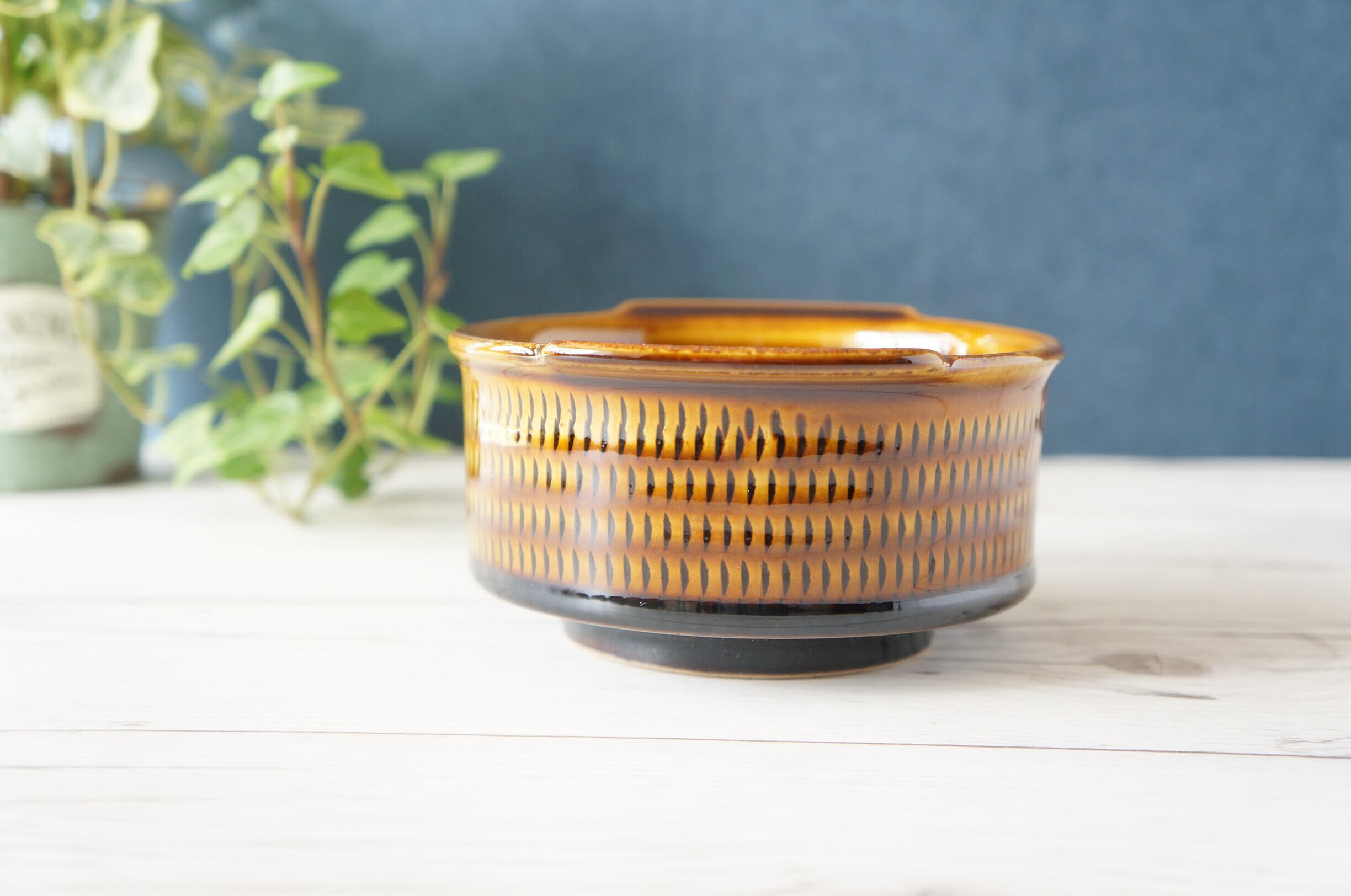 飴釉を施し、表面はうっとりするような濃いブラウンに淡い模様が加わり、