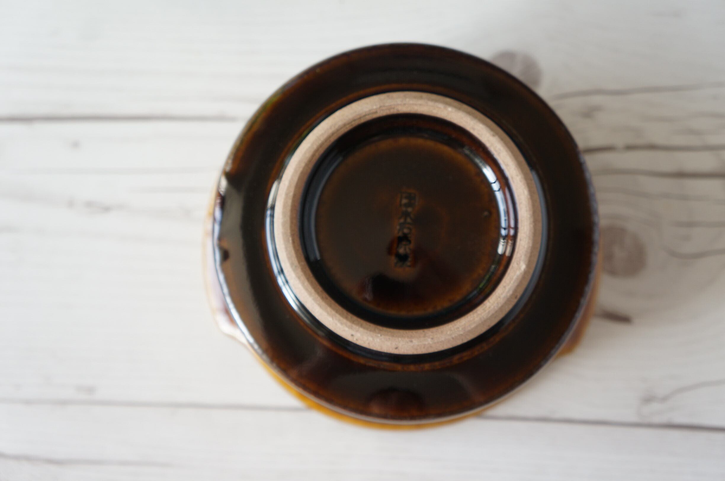 飴釉を施し、表面はうっとりするような濃いブラウンに淡い模様が加わり、
