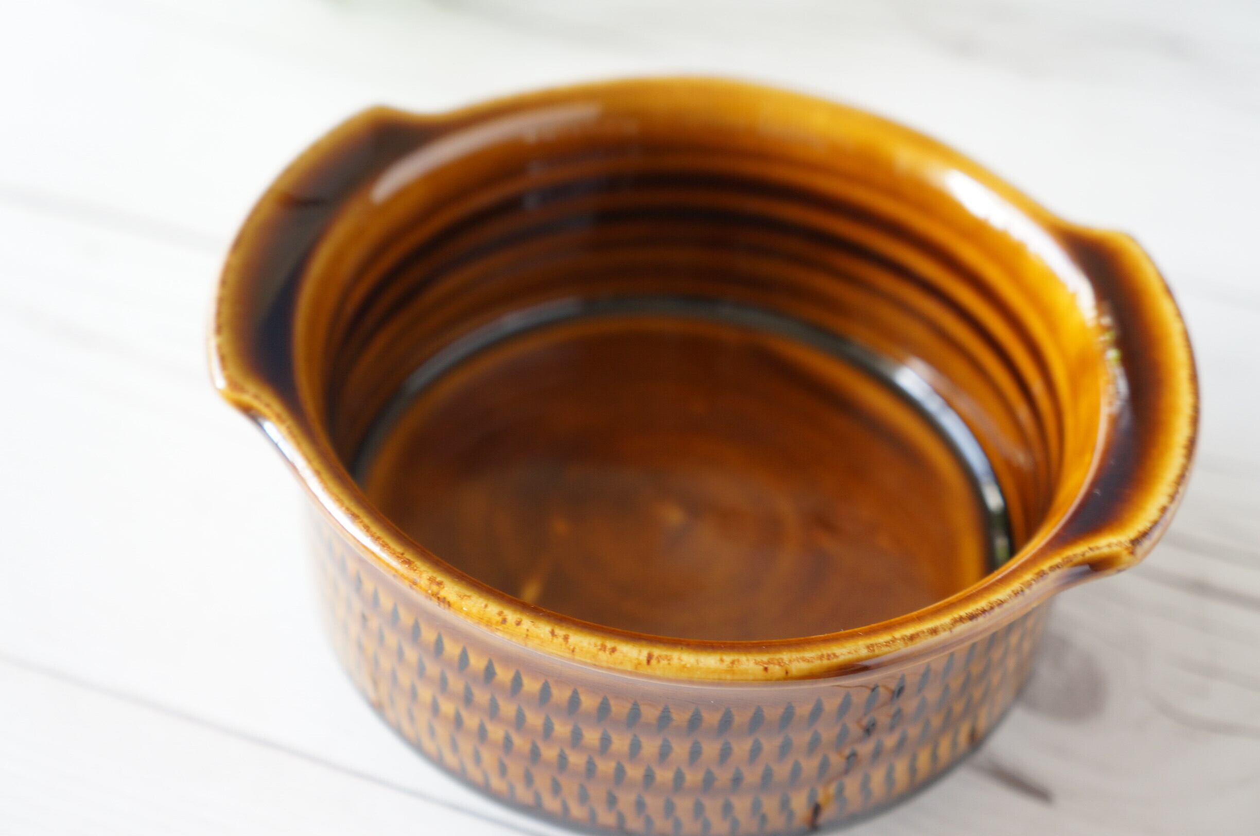 つやつやとした飴釉の表面が美しい、小石原焼・カネハ窯のグラタン皿です。