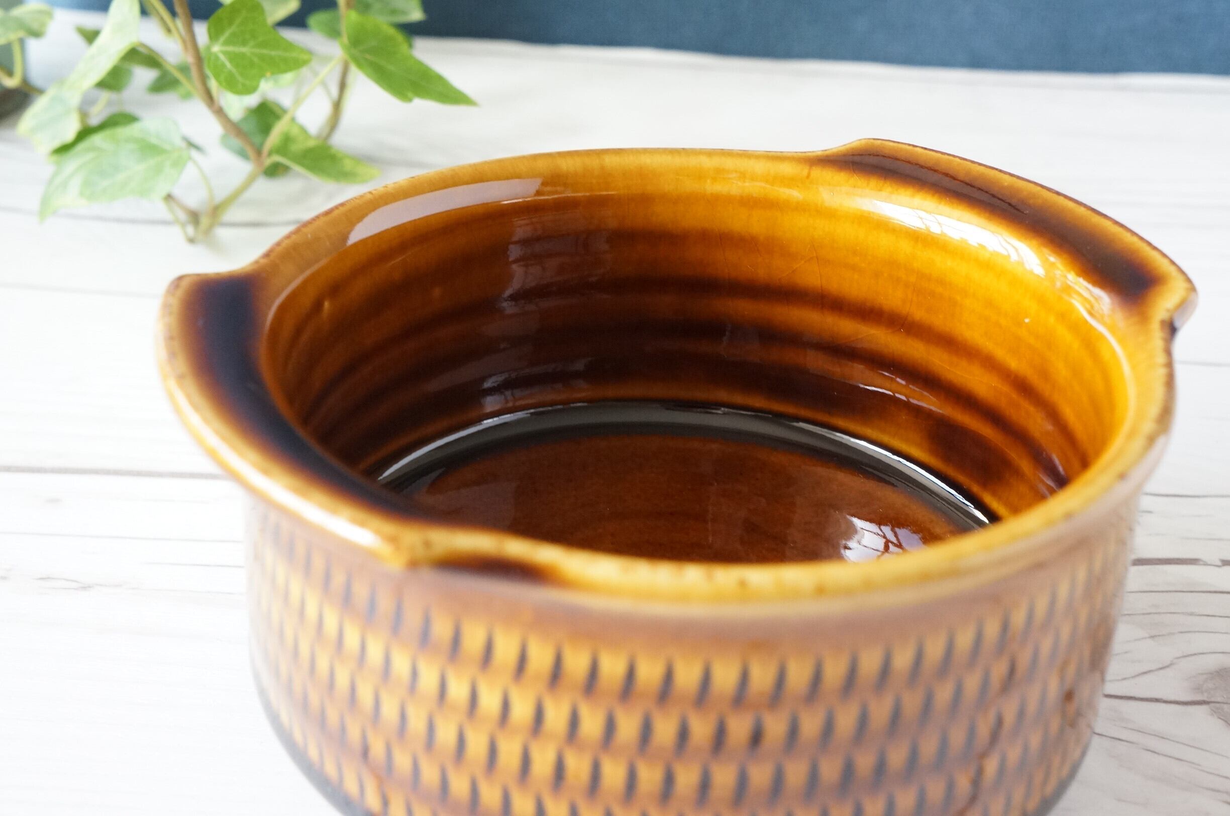飴釉を施し、表面はうっとりするような濃いブラウンに淡い模様が加わり、