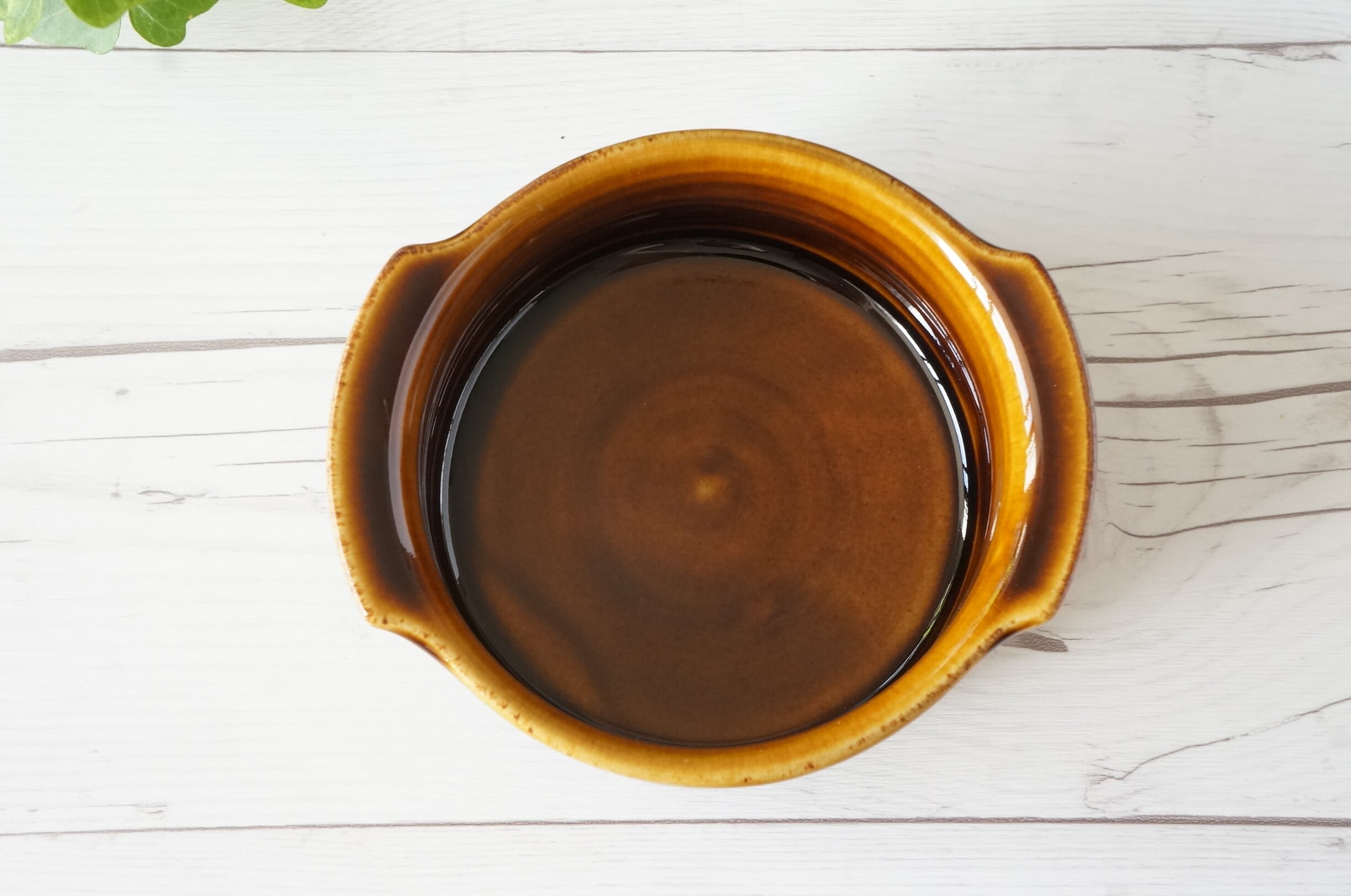 つやつやとした飴釉の表面が美しい、小石原焼・カネハ窯のグラタン皿です。