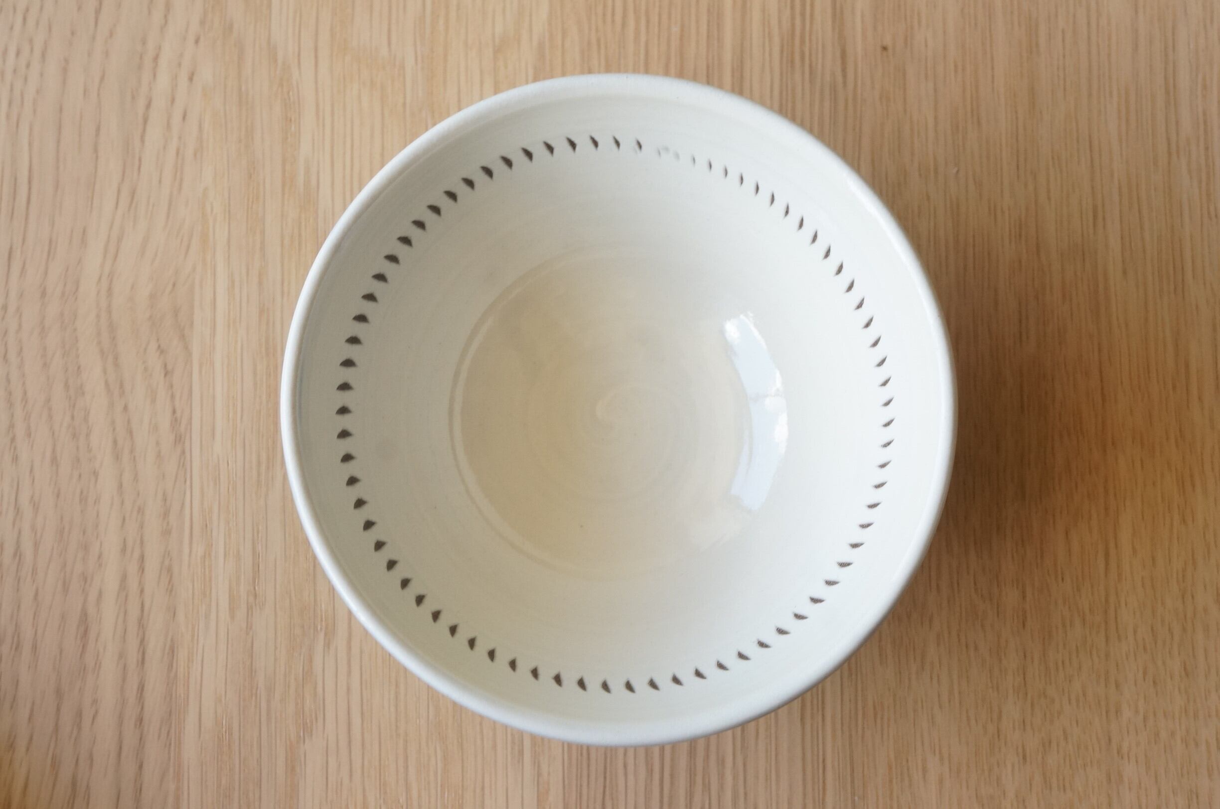 広台にある白い部分は、釉薬をつける際に必ずできる指あとです。