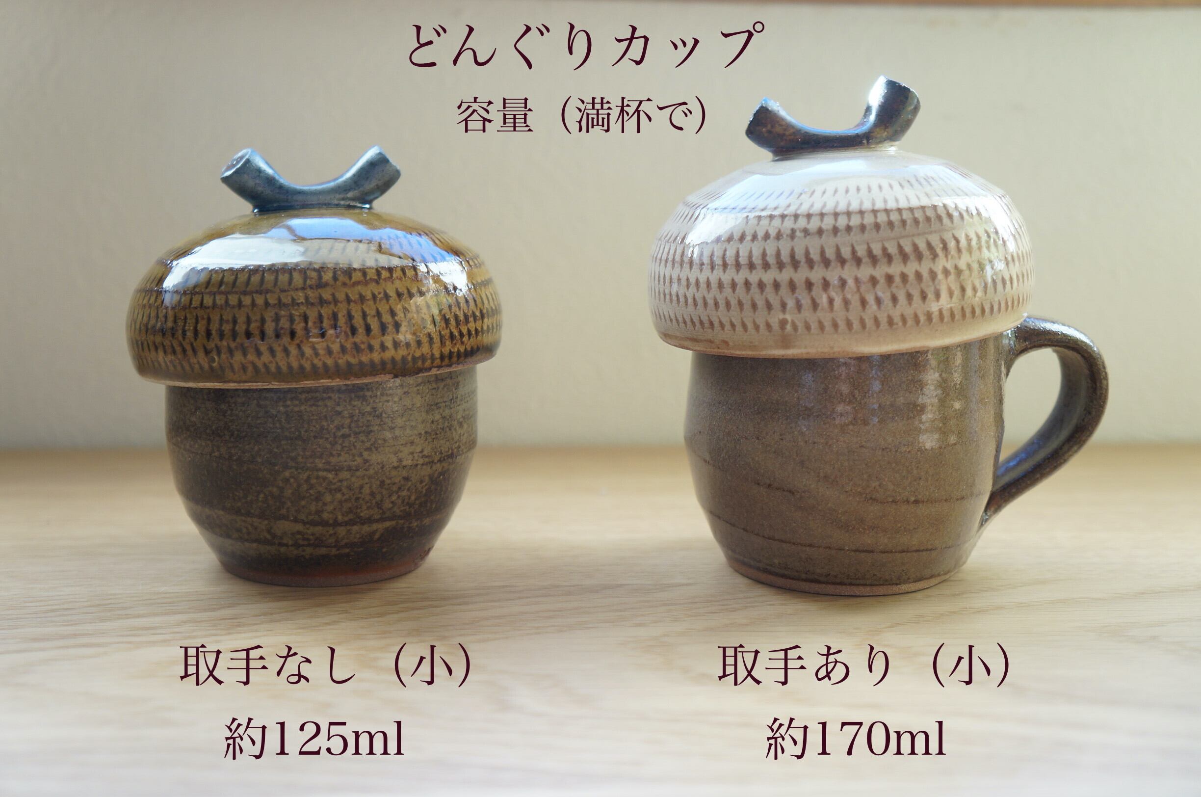 器のサイズは、取手なしのきのこカップやどんぐりカップと同じものです。