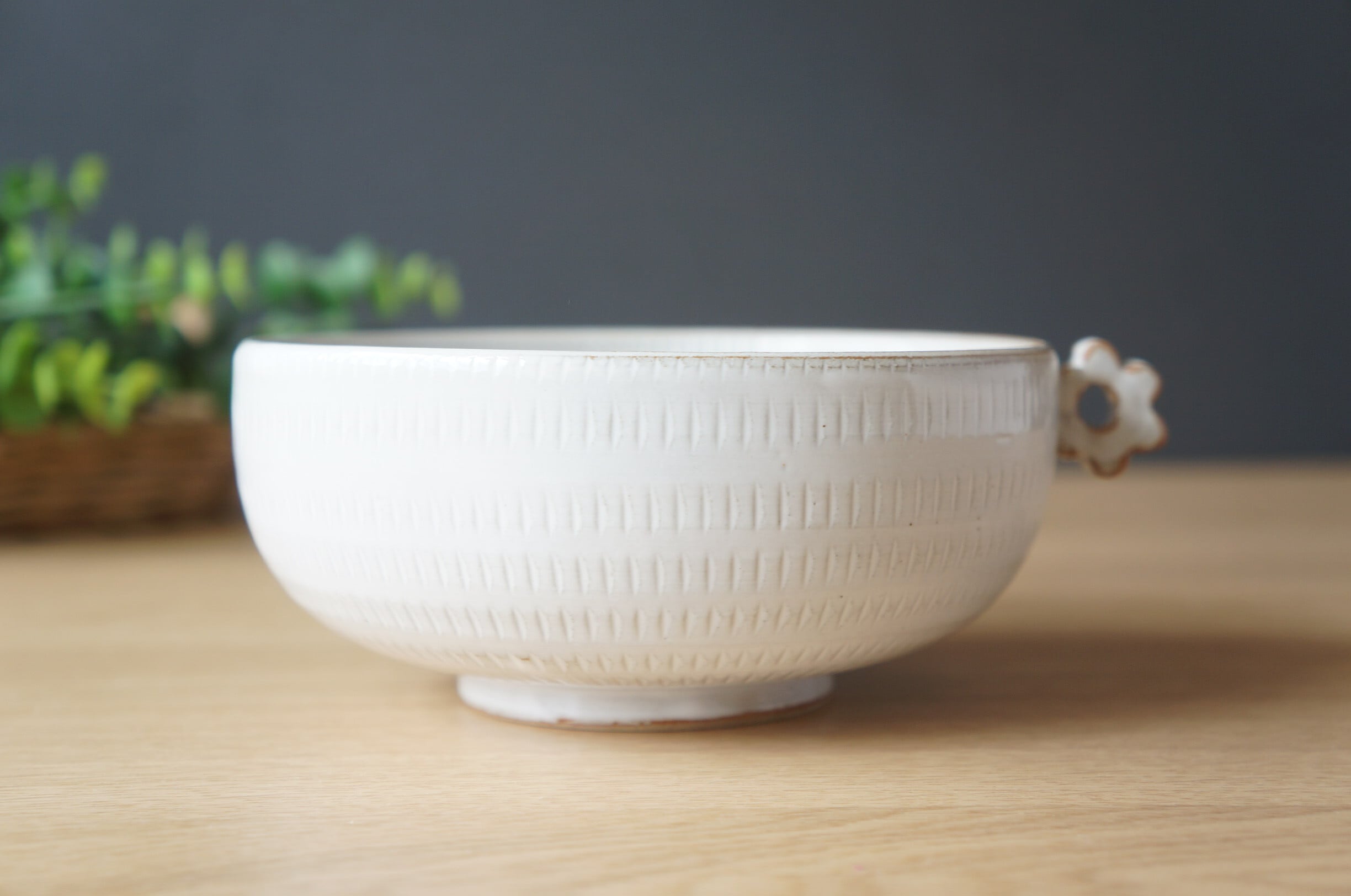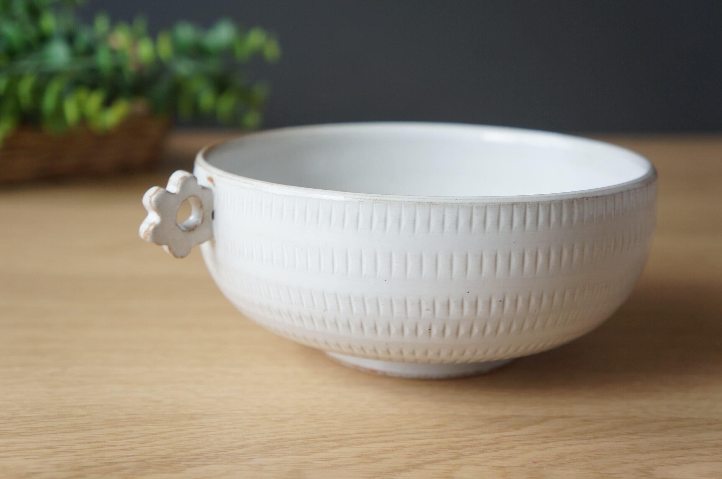 小石原焼 翁明窯元 小丼 アンティークホワイト とびかんな 【37-473】