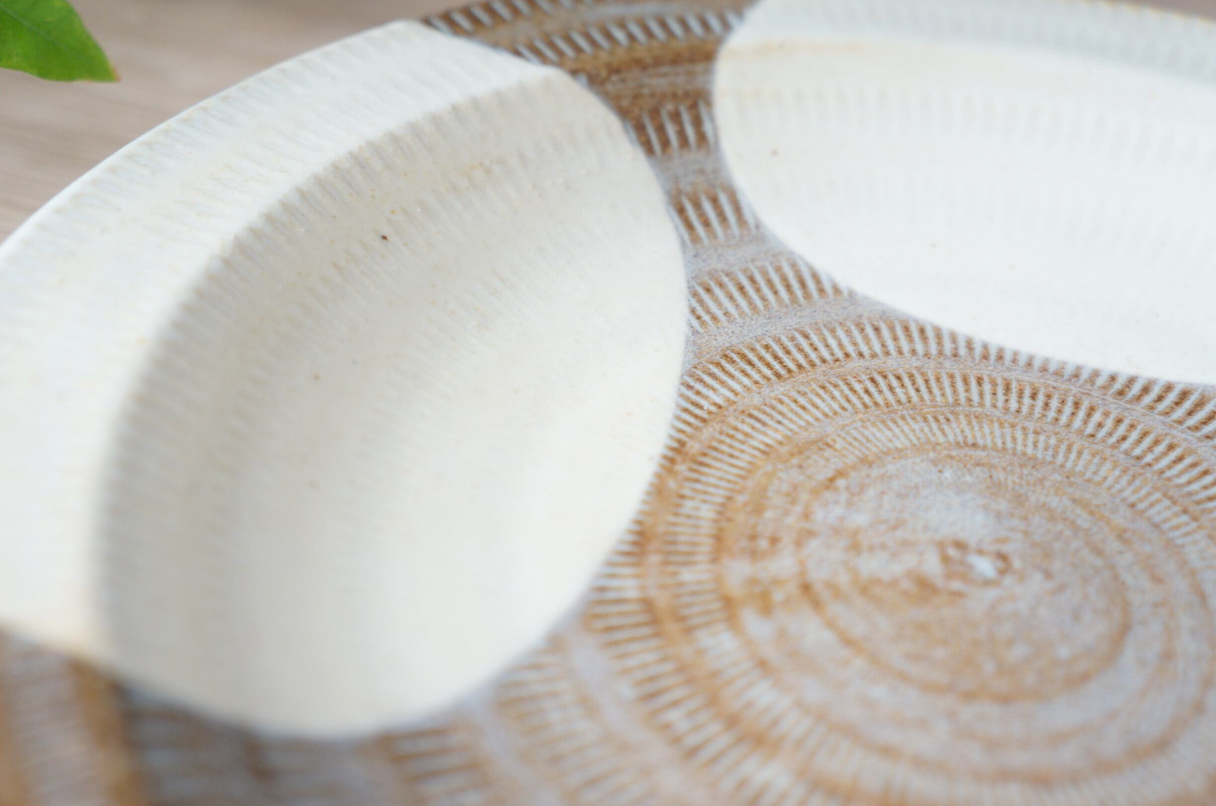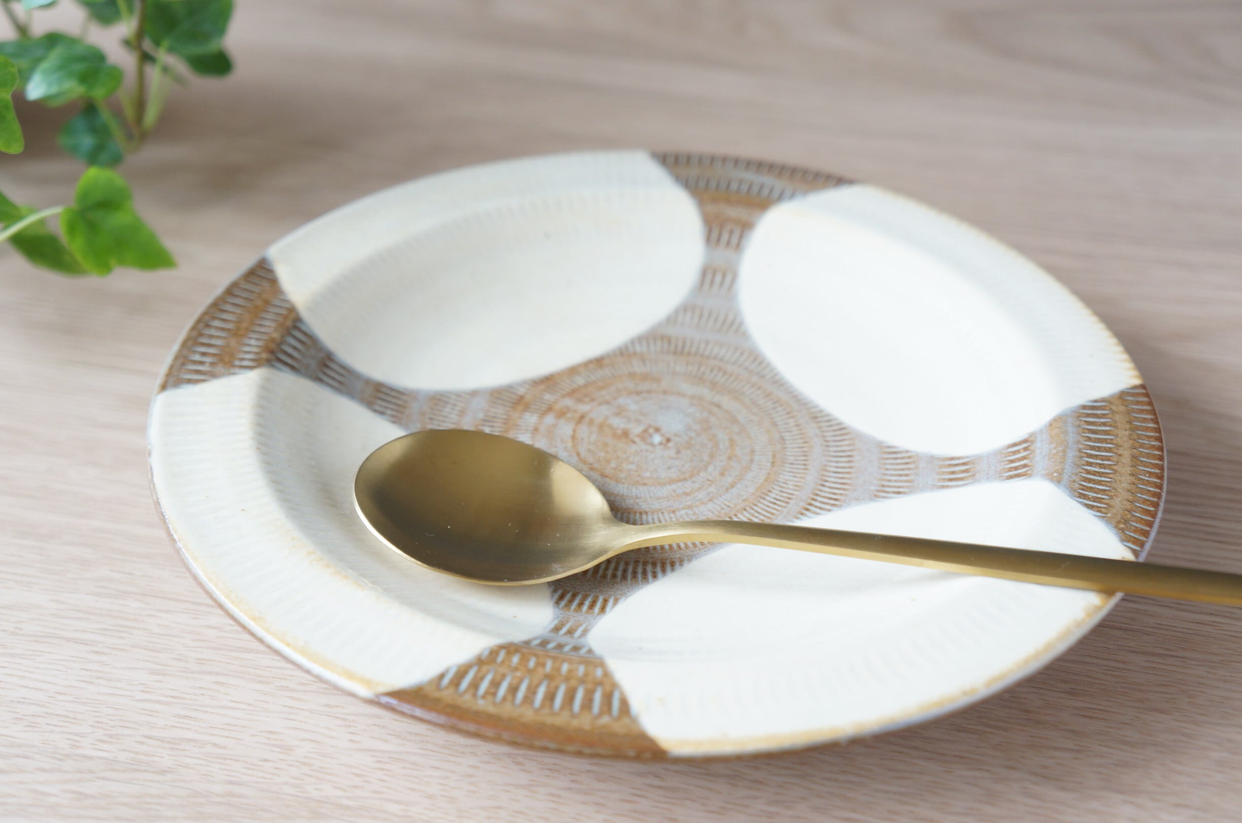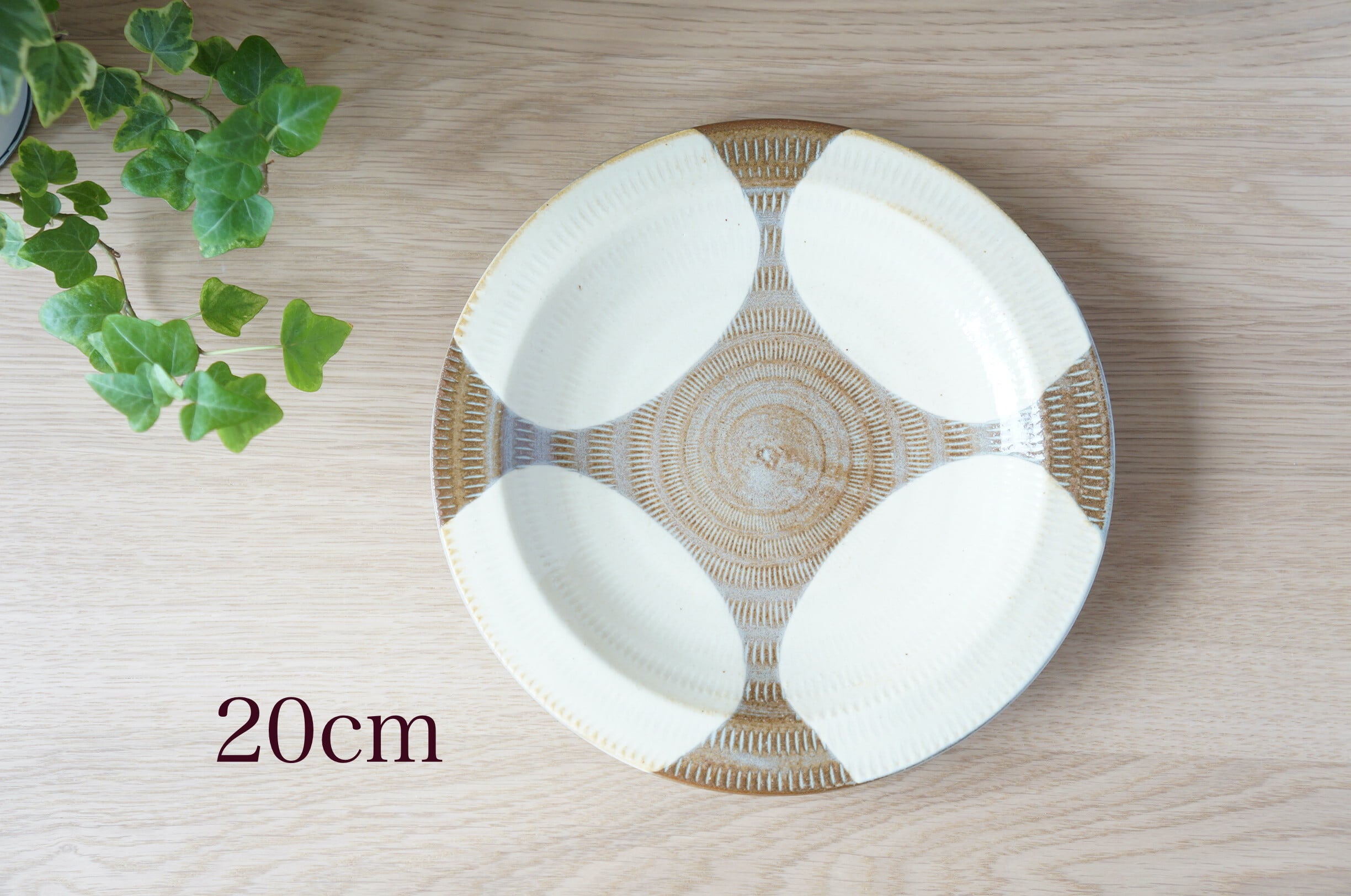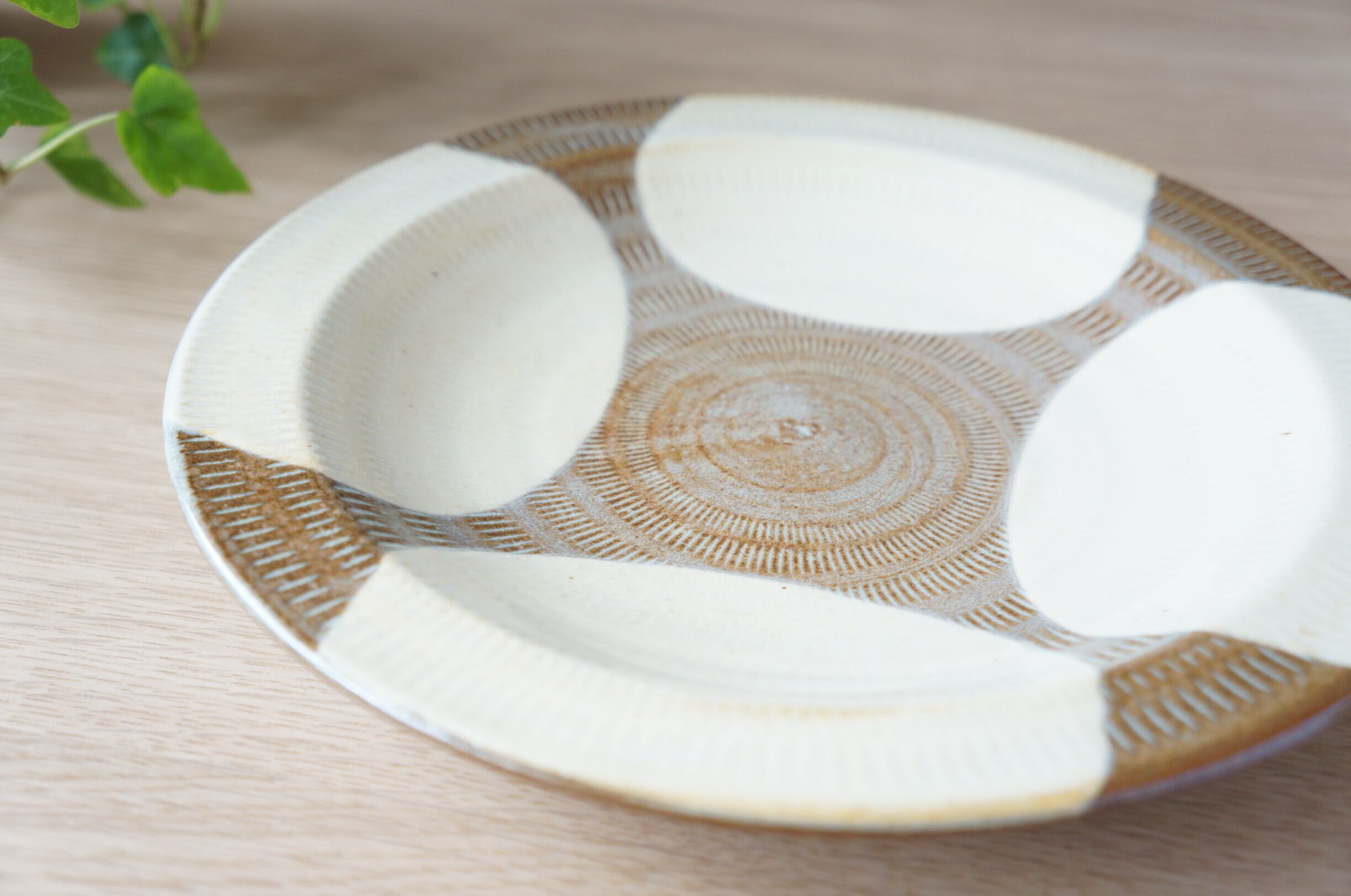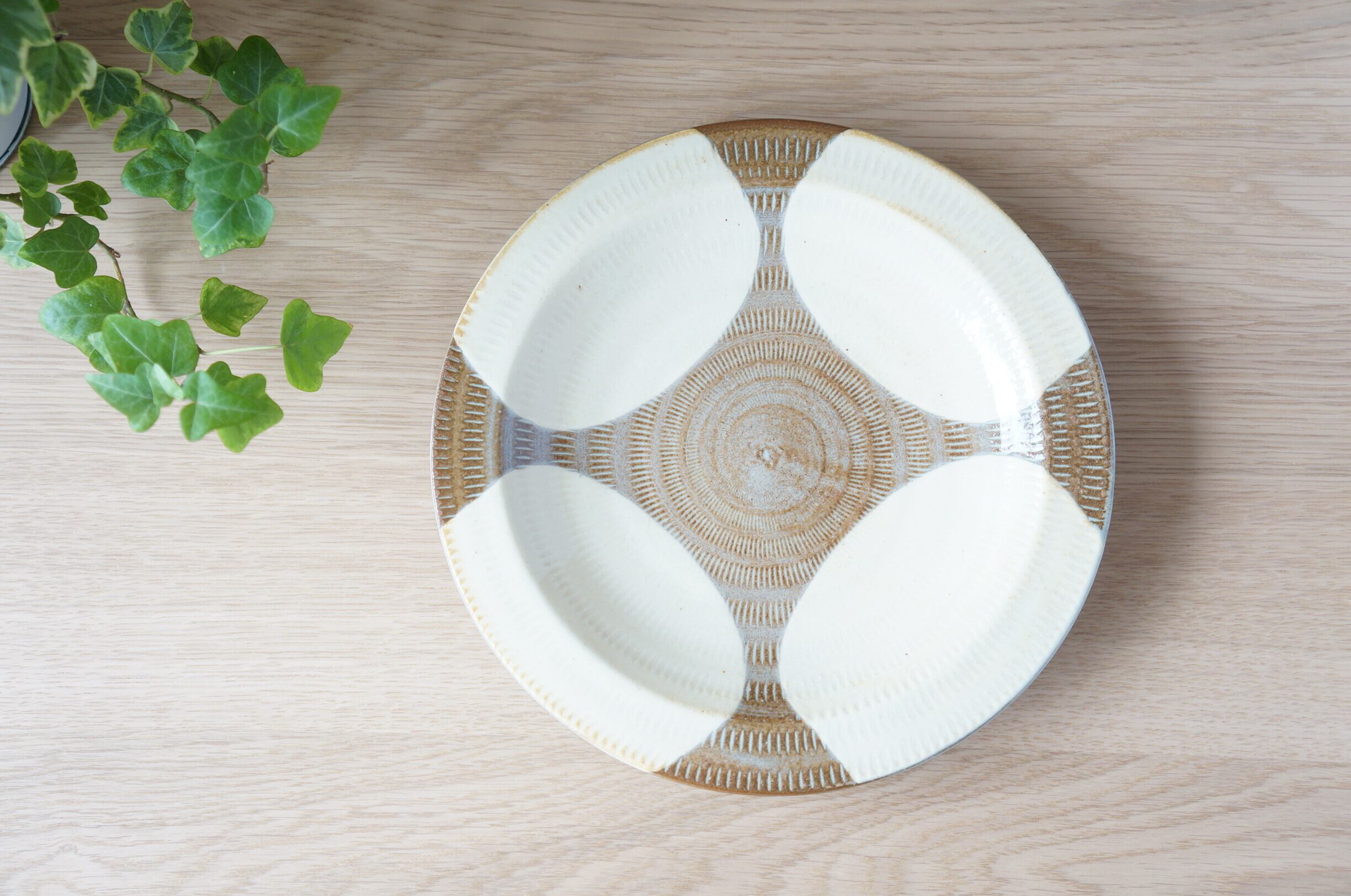 小石原焼 翁明窯元 リム皿(小) 四方がけ・白釉 ②【37-465】