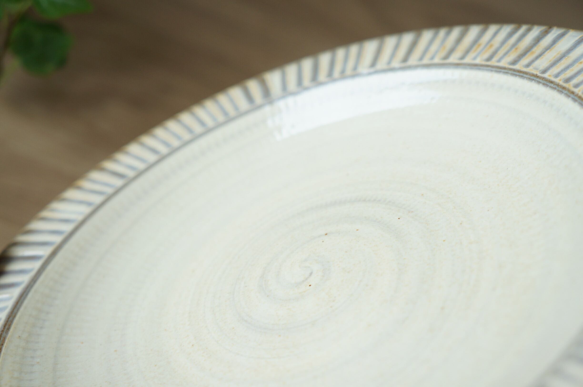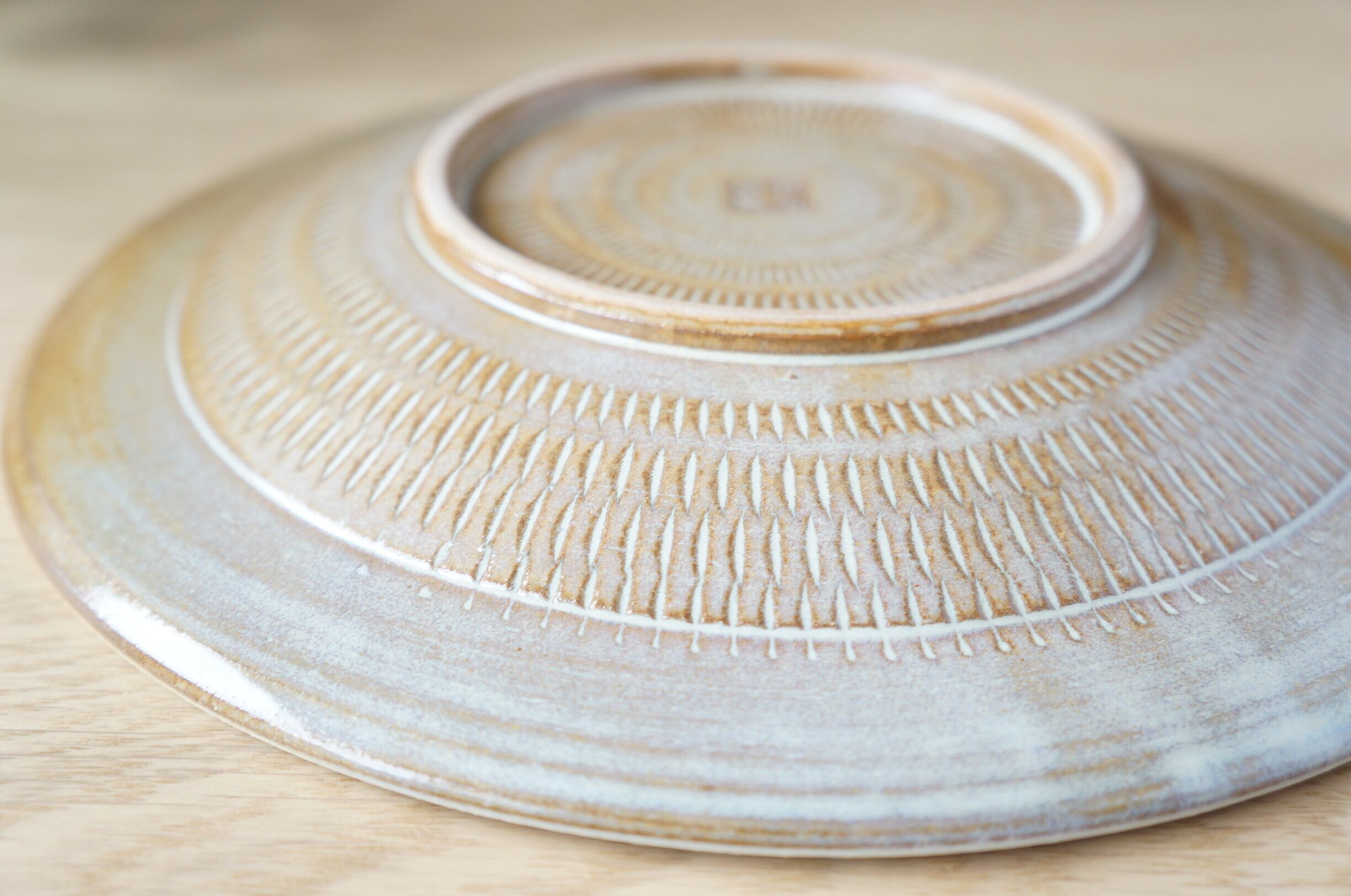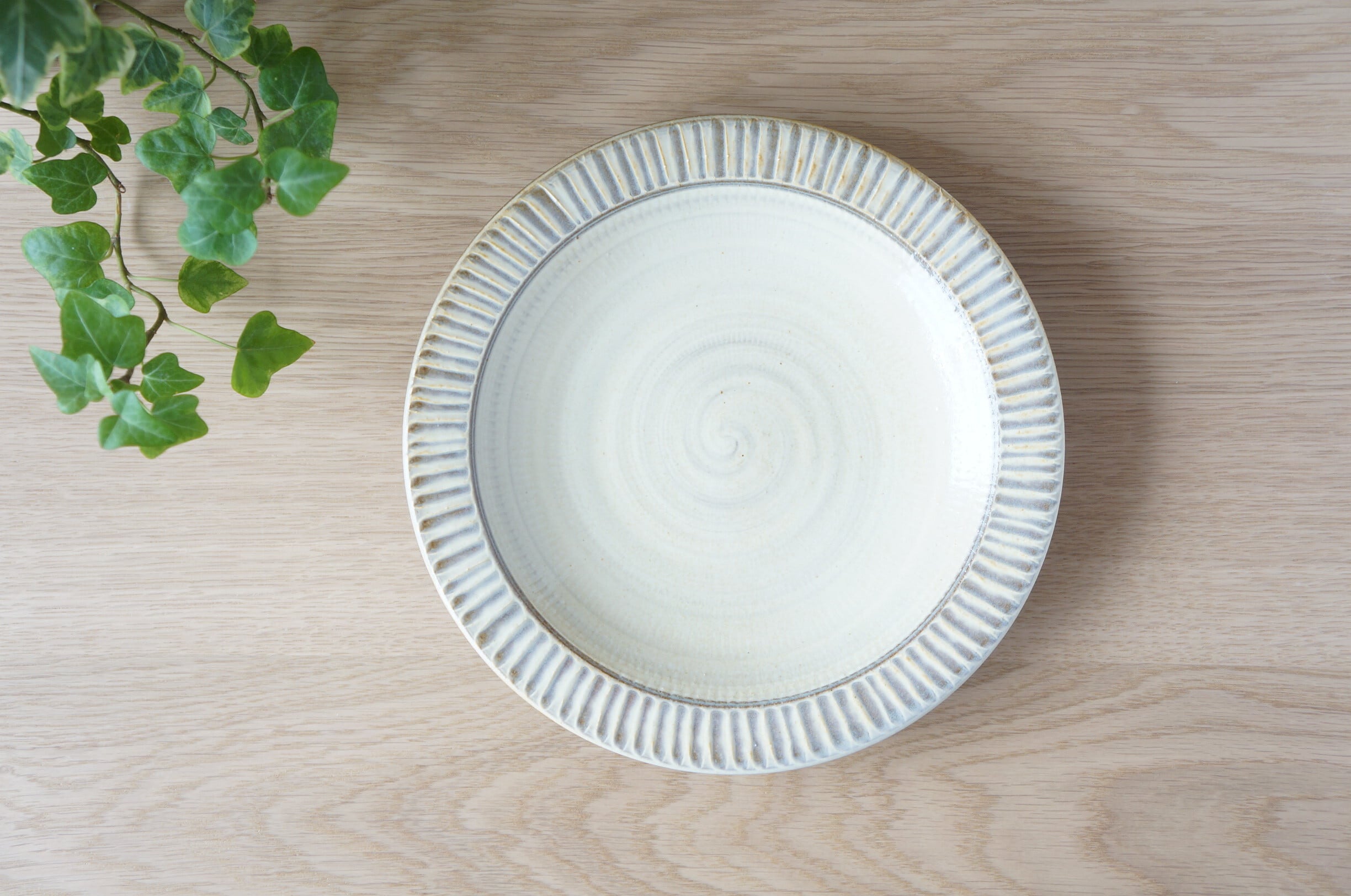 小石原焼 翁明窯元 リム皿(小) 刷毛目・白釉 ①【37-466】