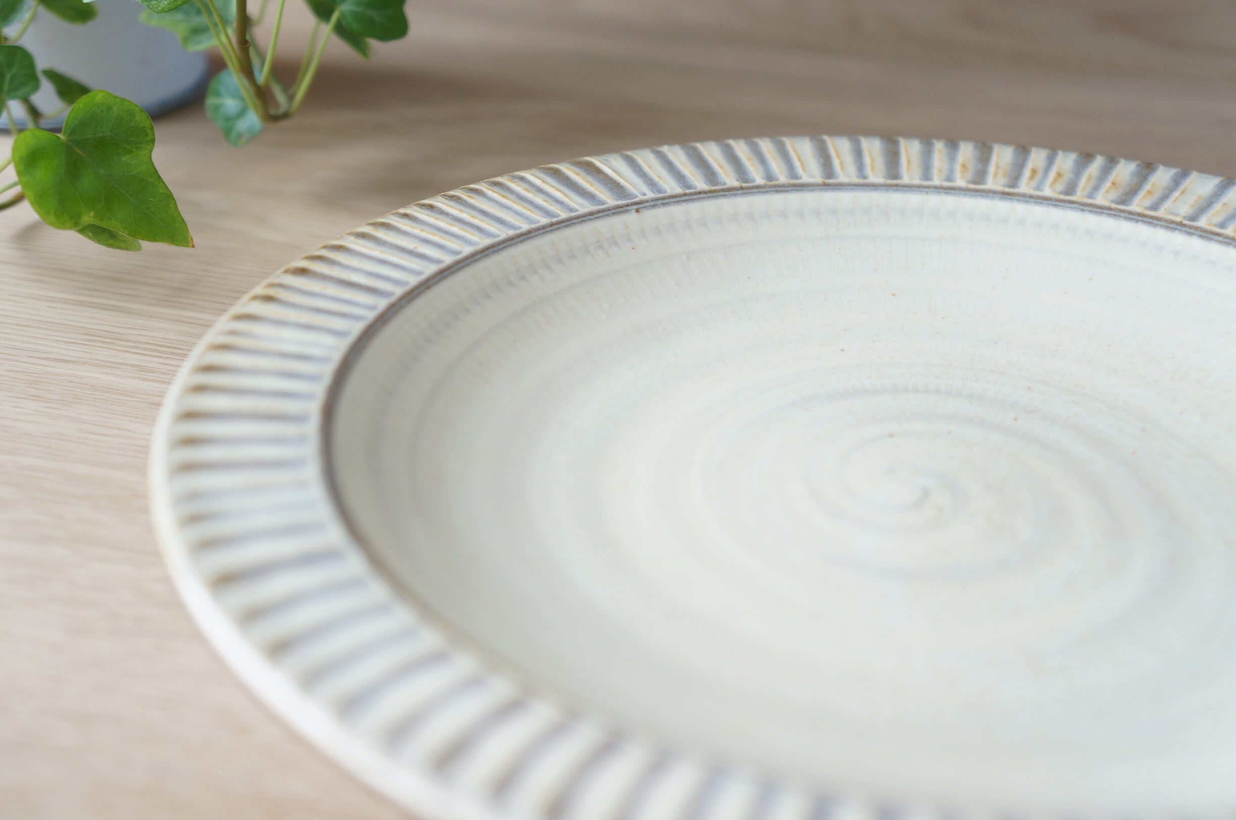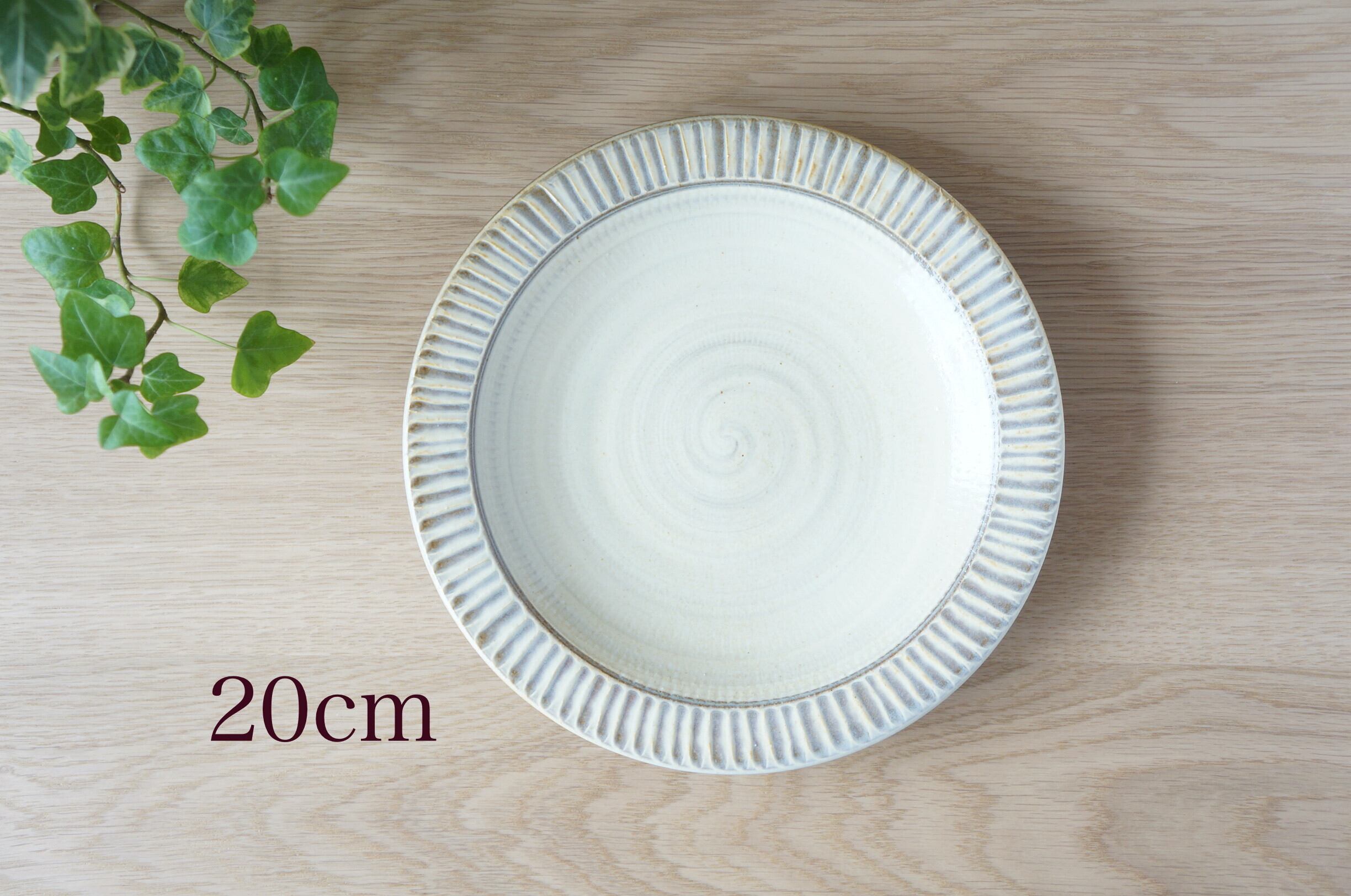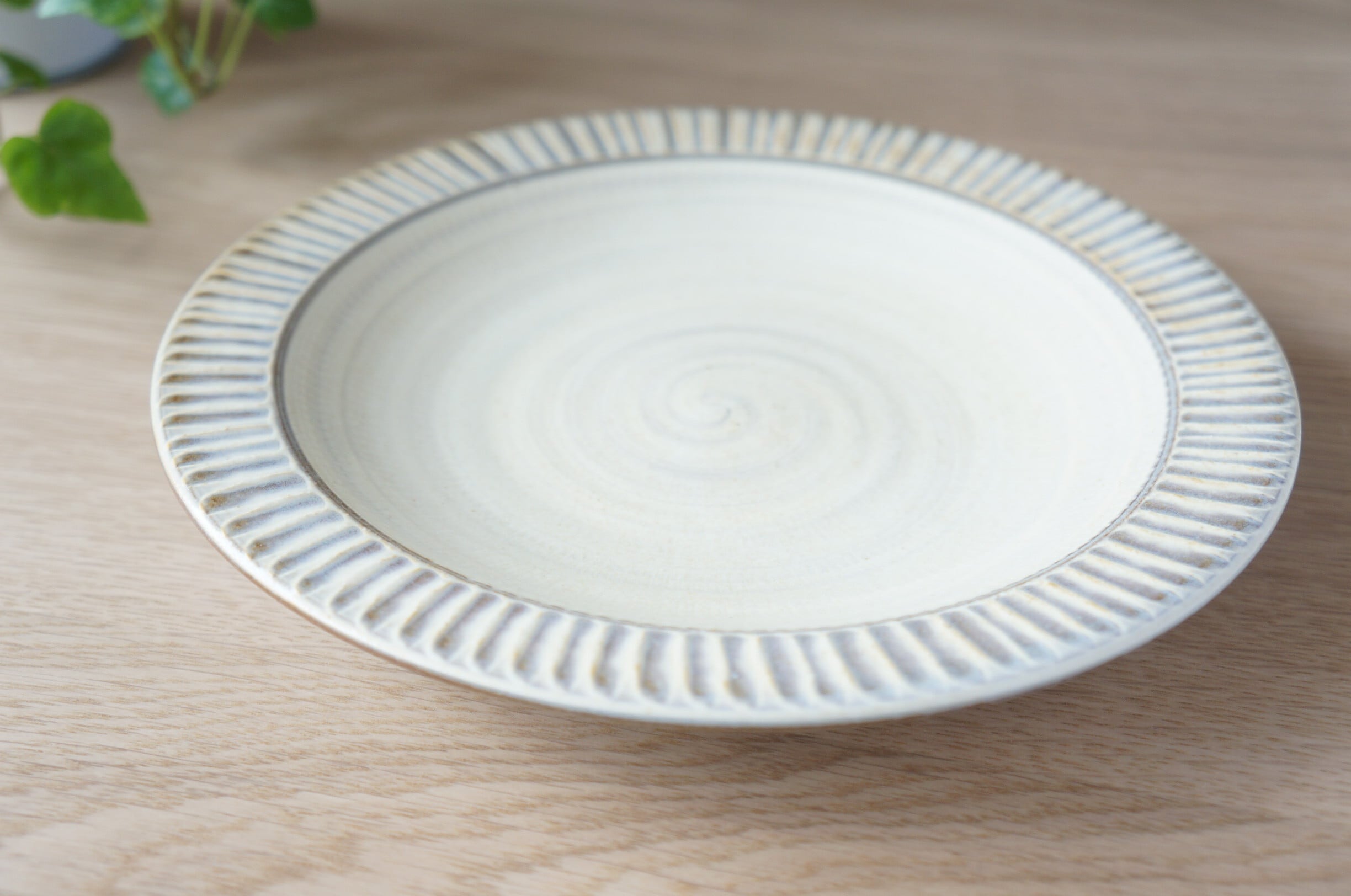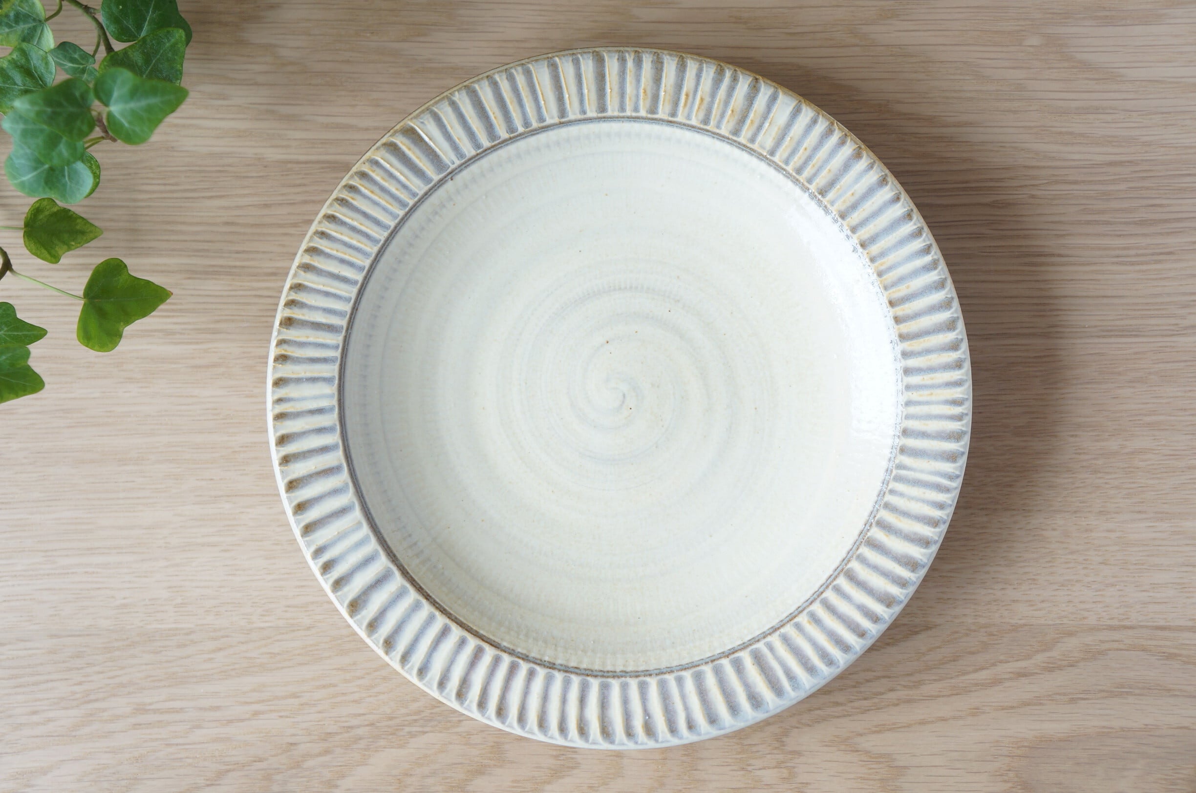 小石原焼 翁明窯元 リム皿(小) 刷毛目・白釉 ①【37-466】