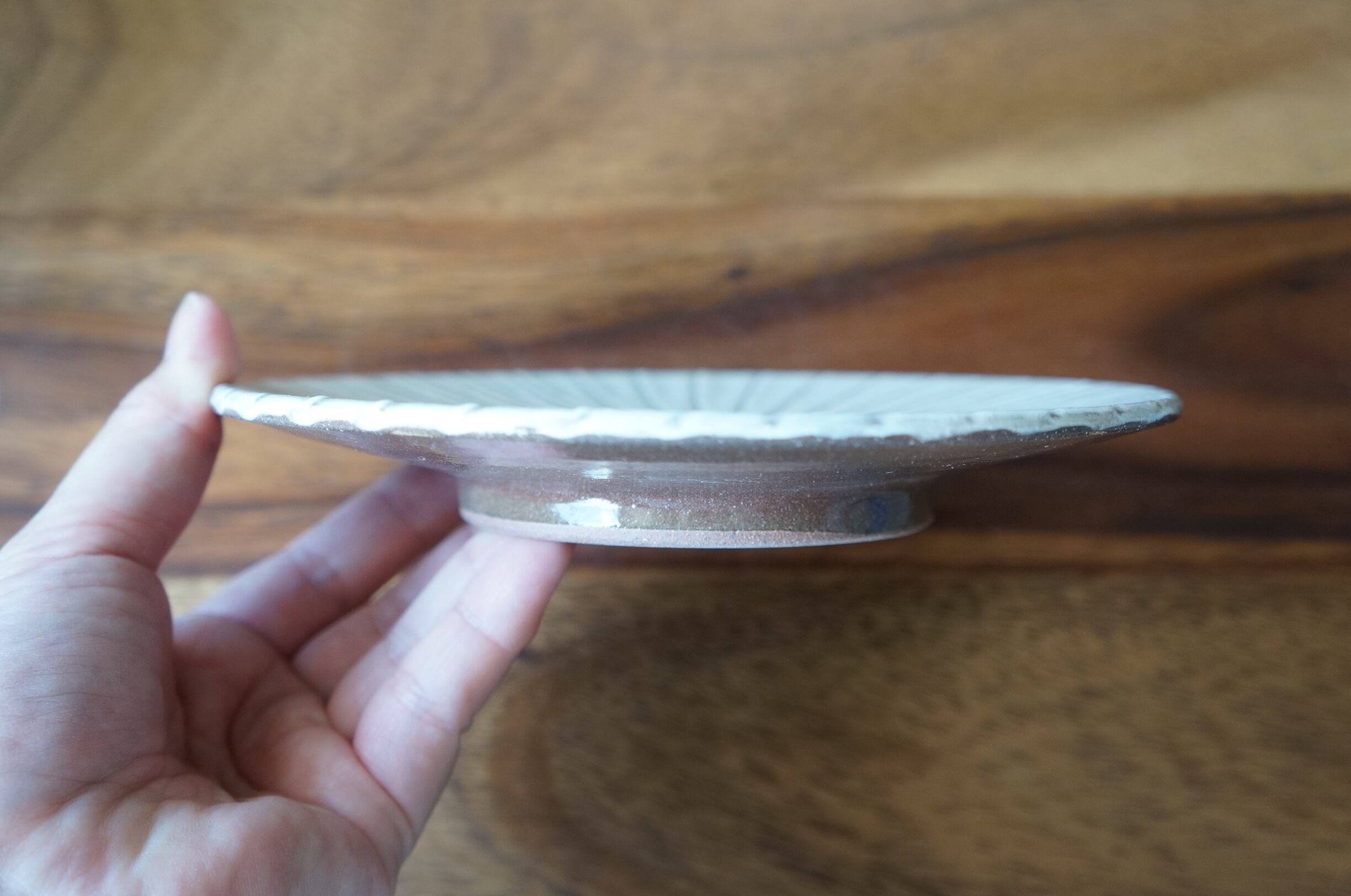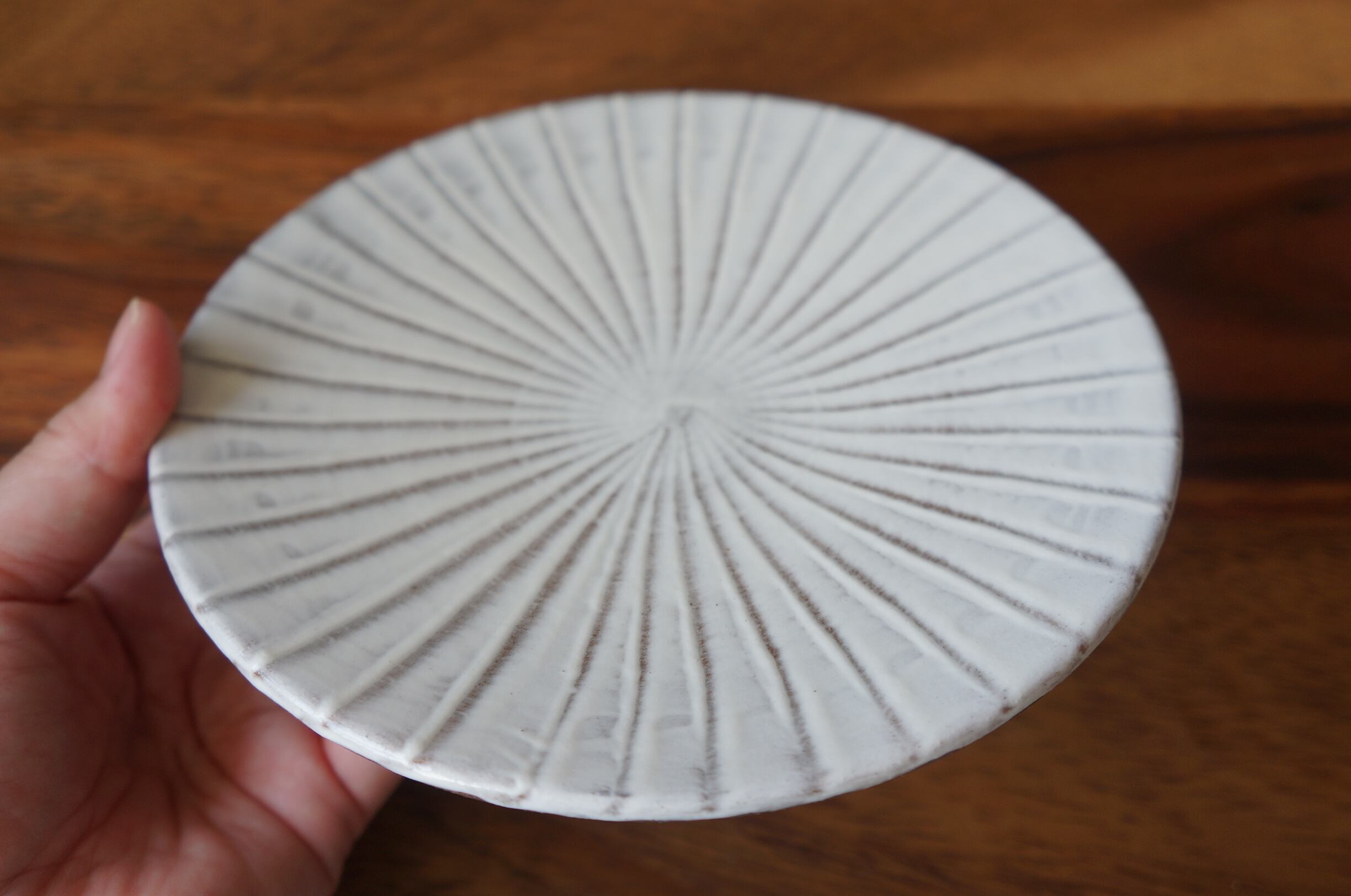 小石原焼の伝統技法、刷毛目模様の5.5寸サイズの平皿です。