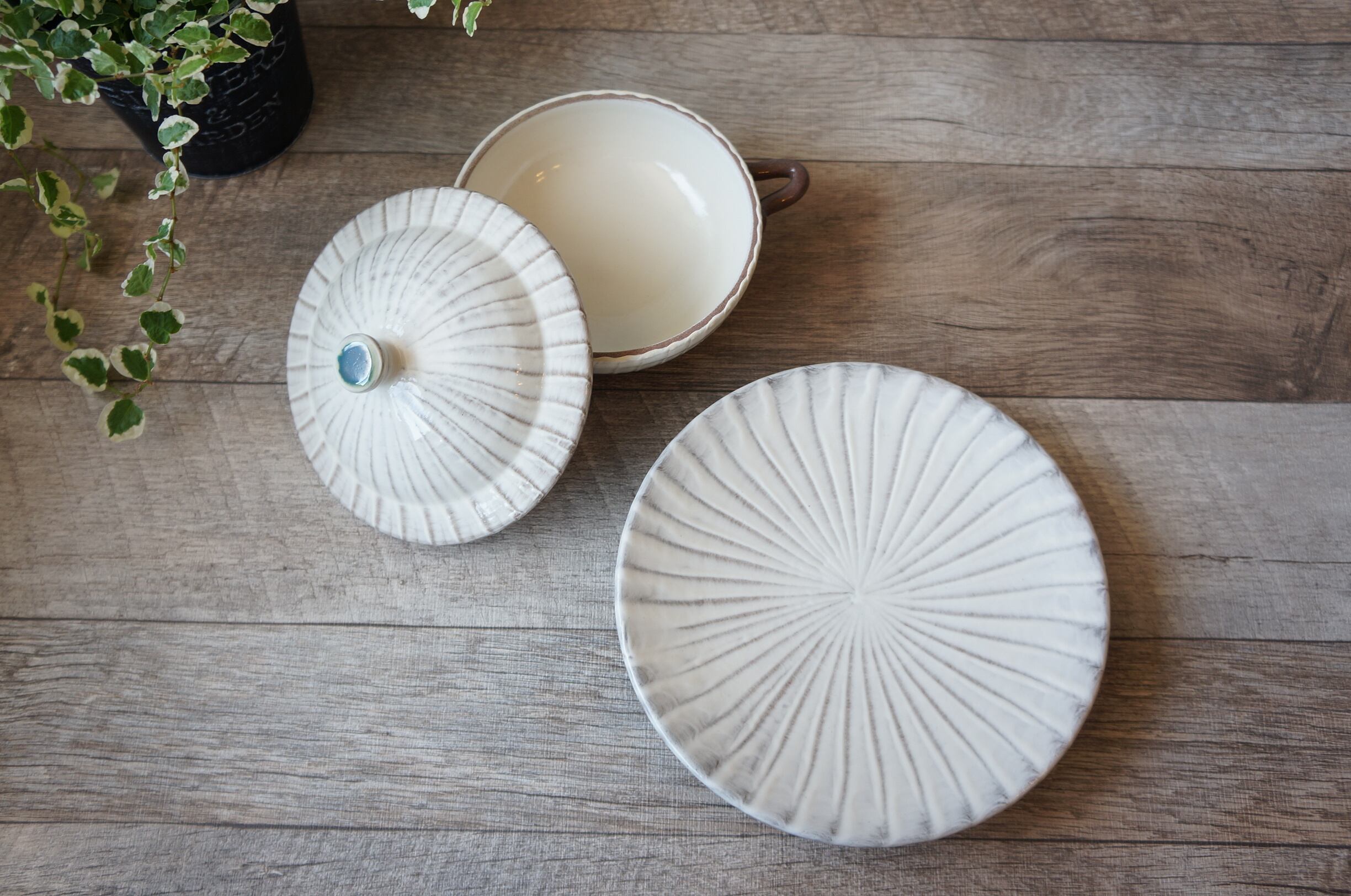 小石原焼 早川窯元 ココットソーサー 刷毛目 ② 【8-290】