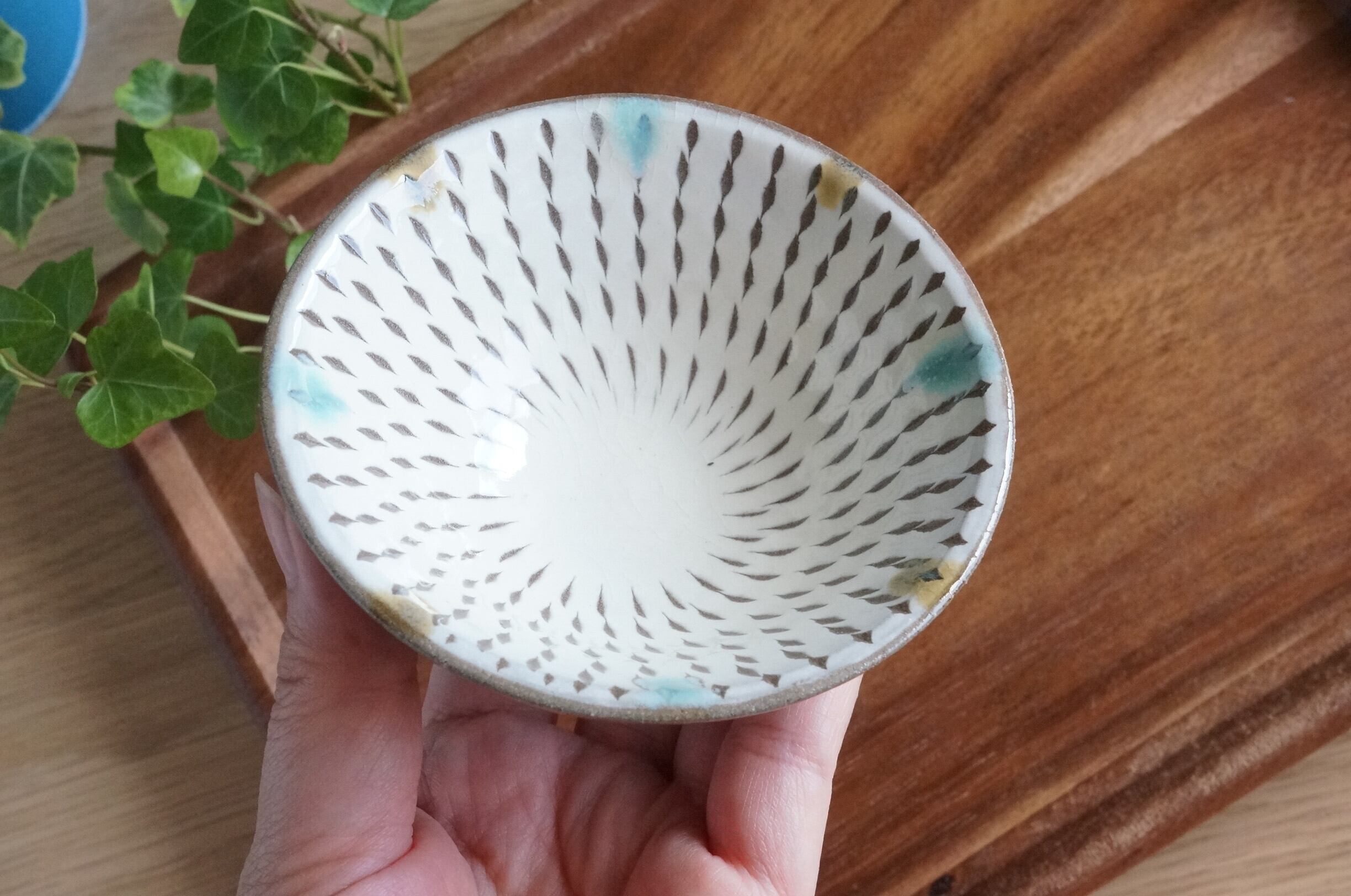 小石原焼 まるた窯 豆鉢 三彩とびかんな ② 【30-8】