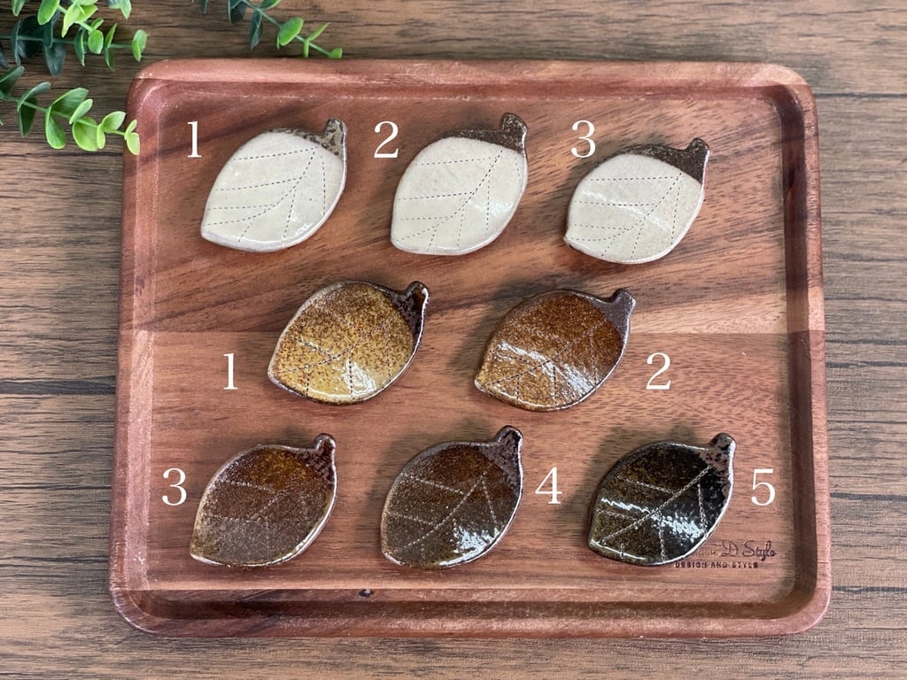小石原焼 やままる窯 箸置き 木の葉 ③ [1-507]