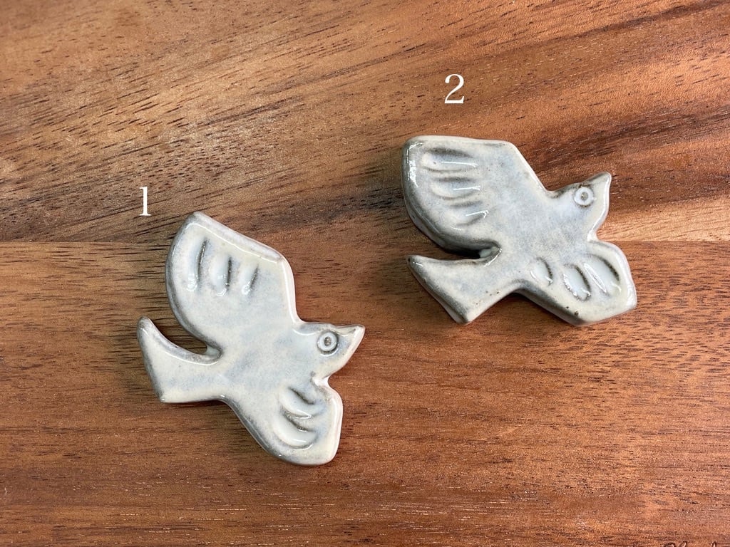 小石原焼 やままる窯 鳥のタイル 白釉 (箸置きサイズ) ① [1-513]