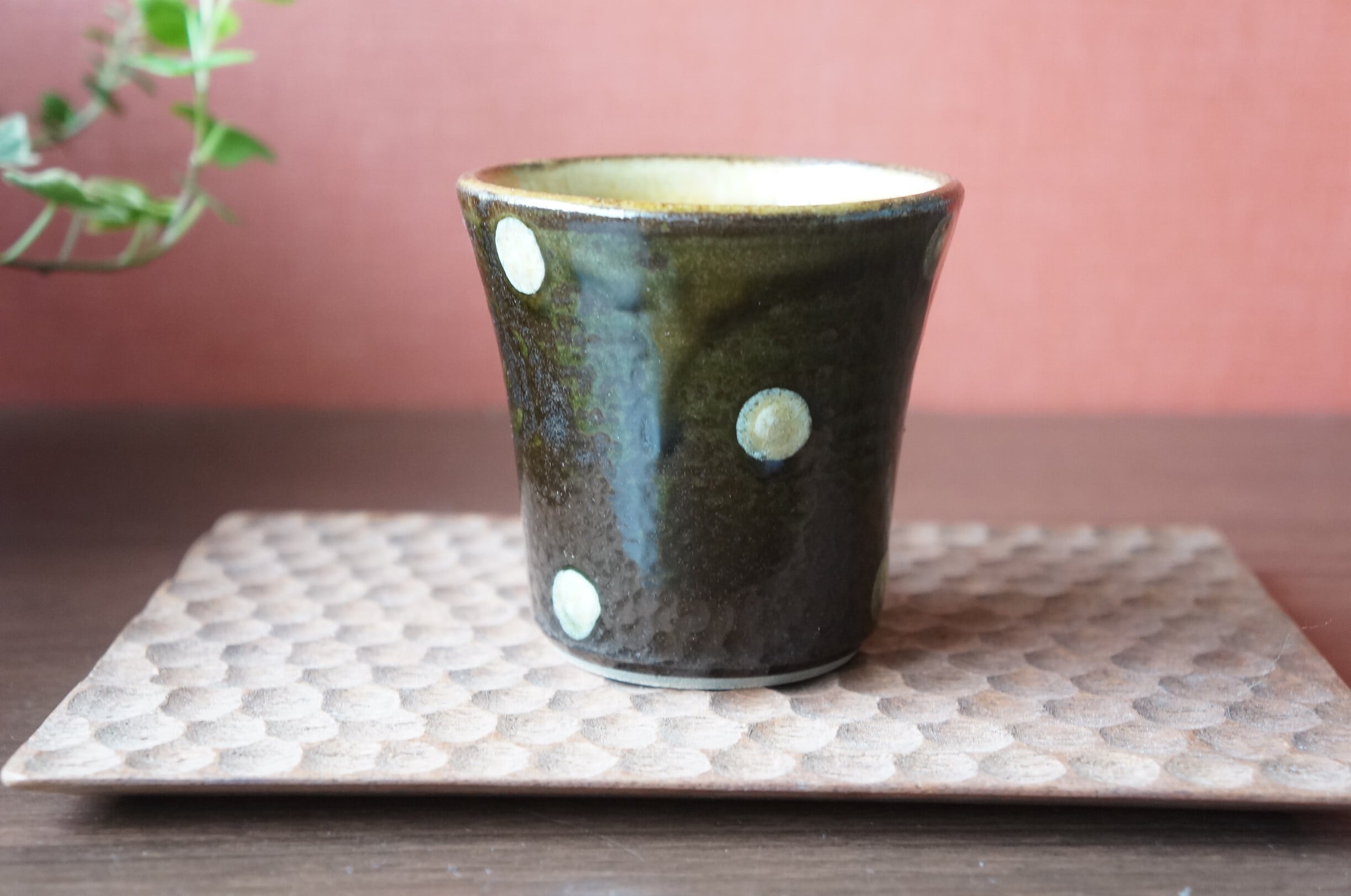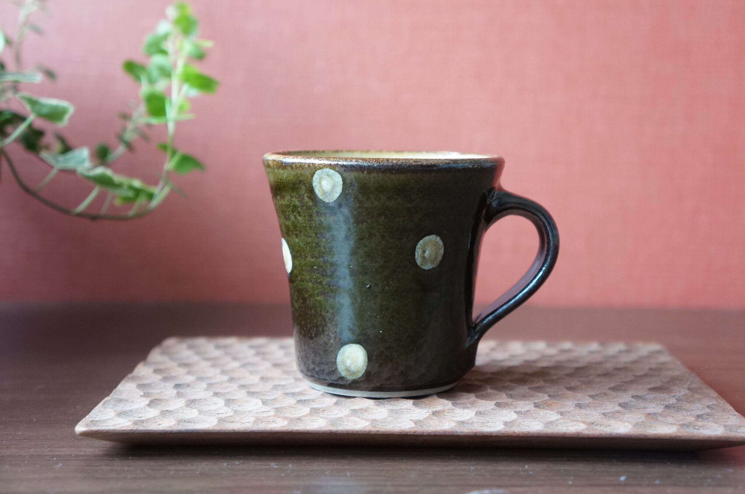 小石原焼 やままる窯 ドットマグカップ 黒 [1-413]