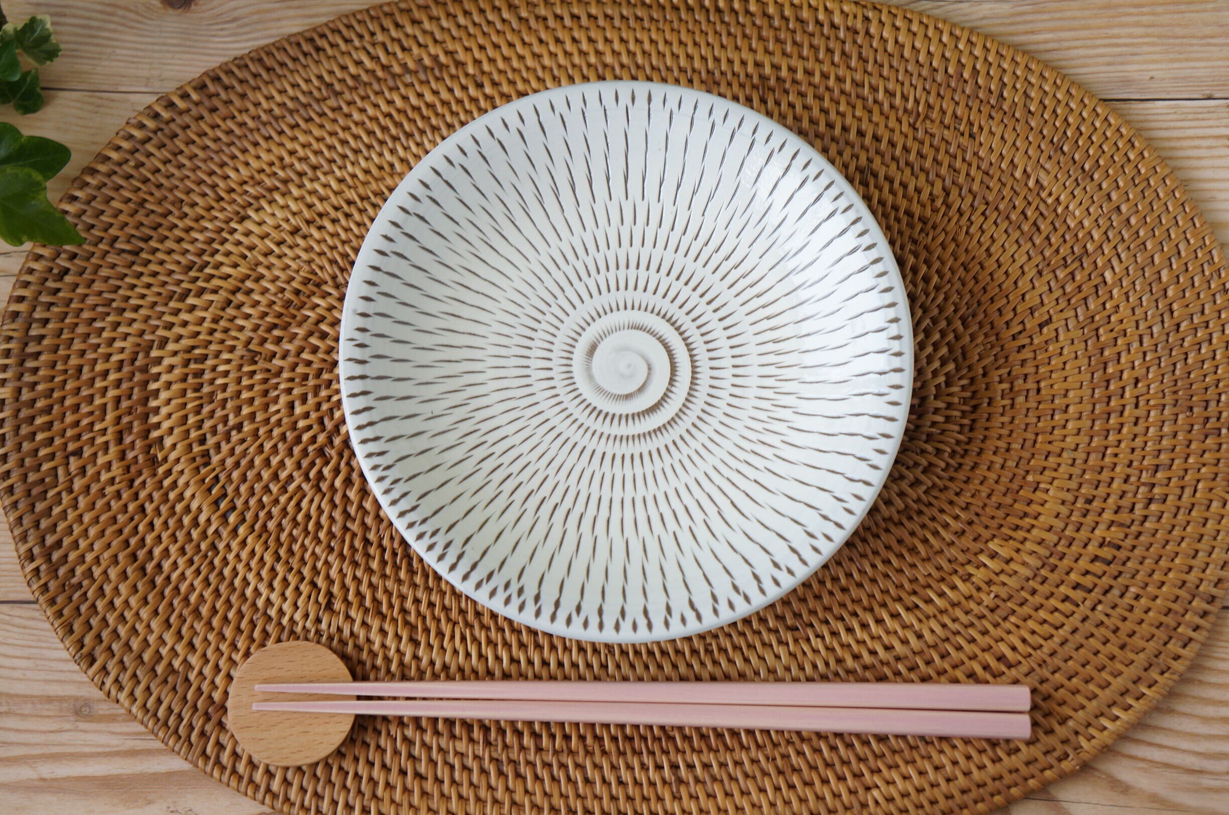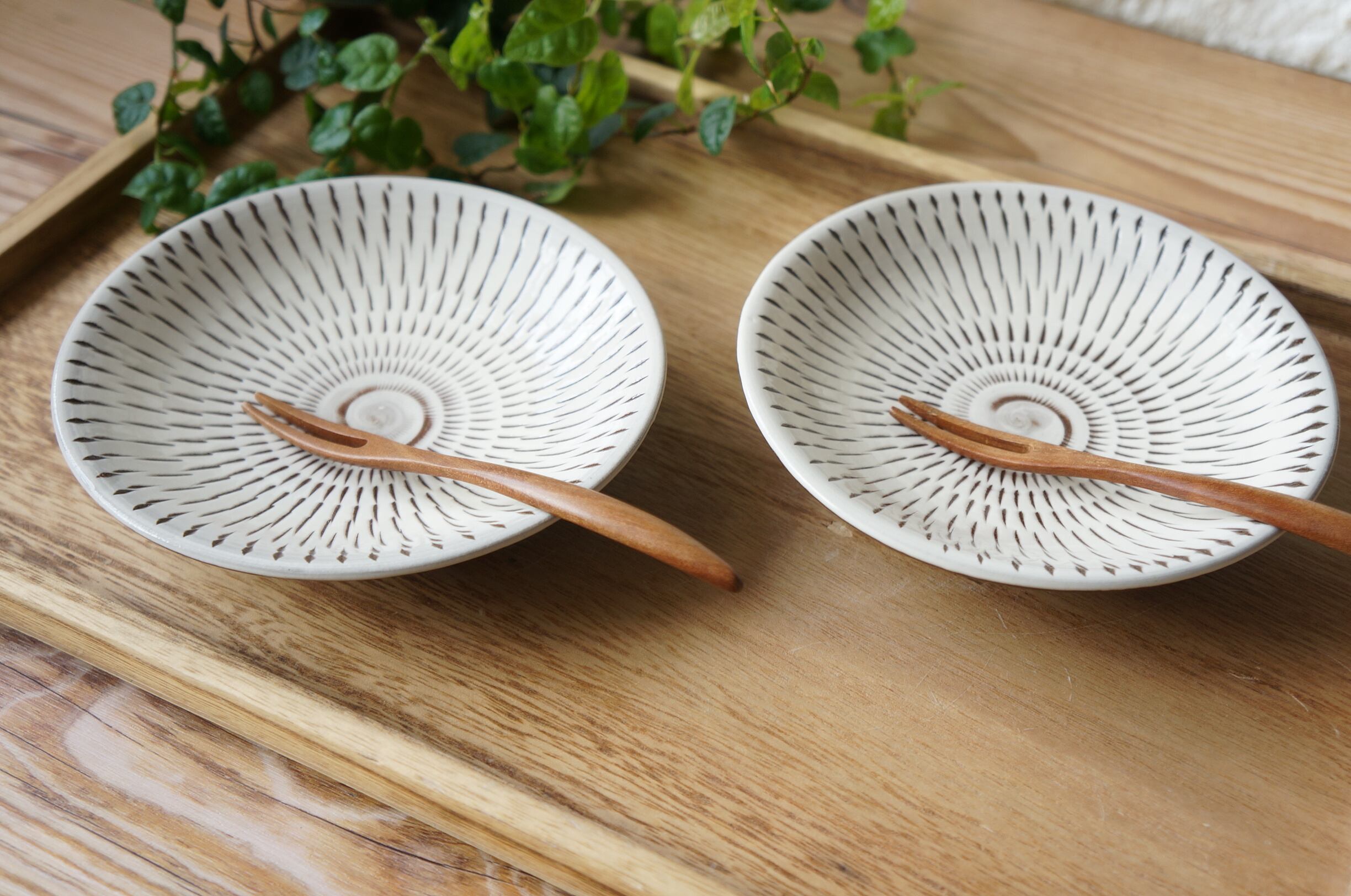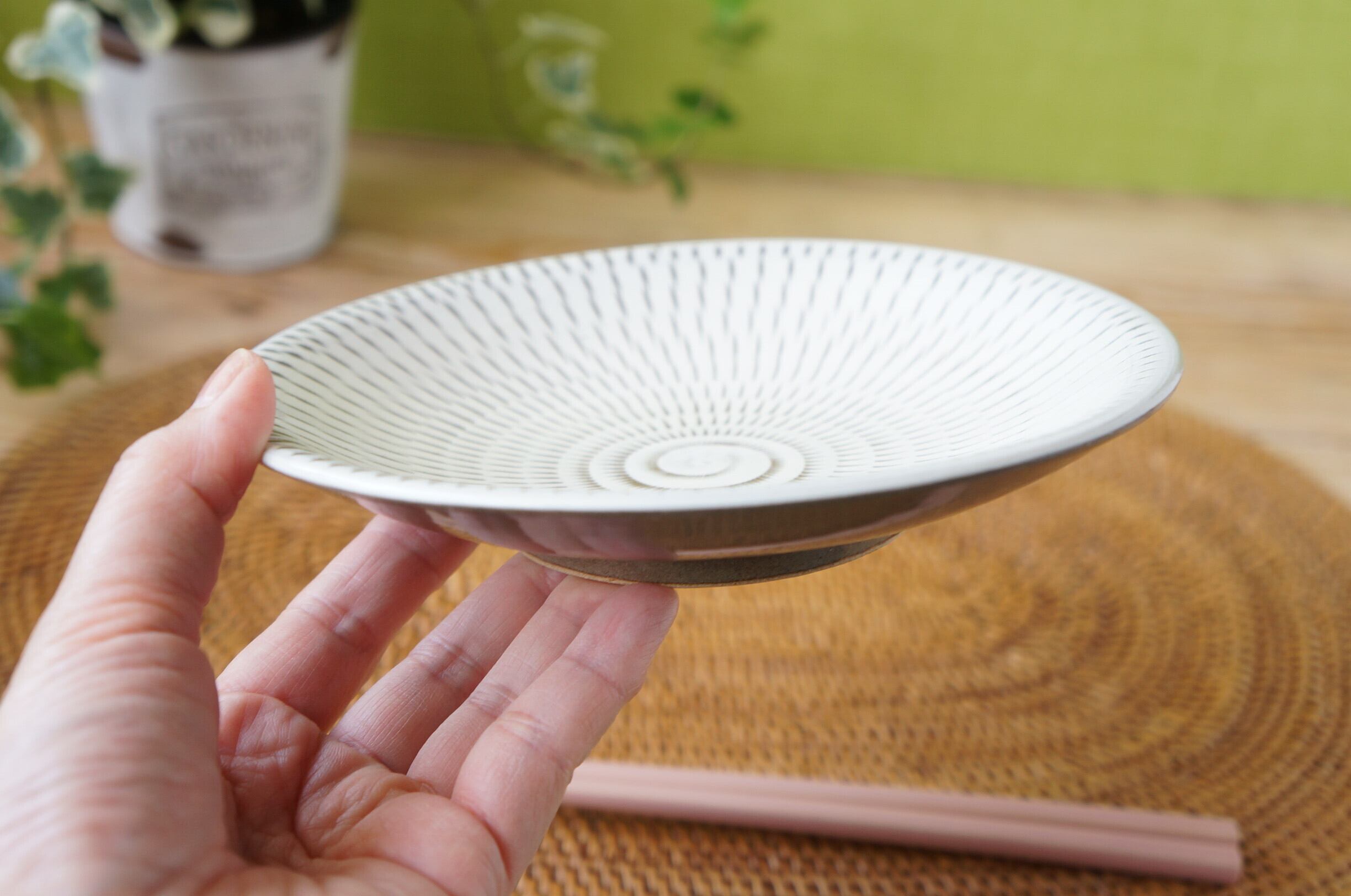 小石原焼 宝山窯のとびかんなプレート 5.5寸サイズです。