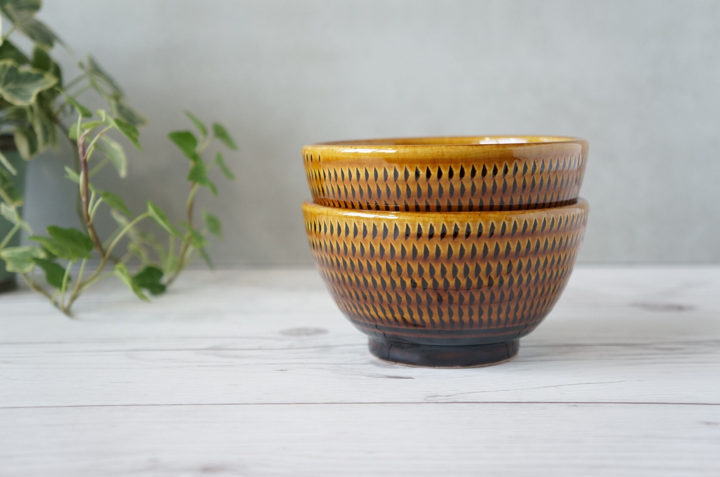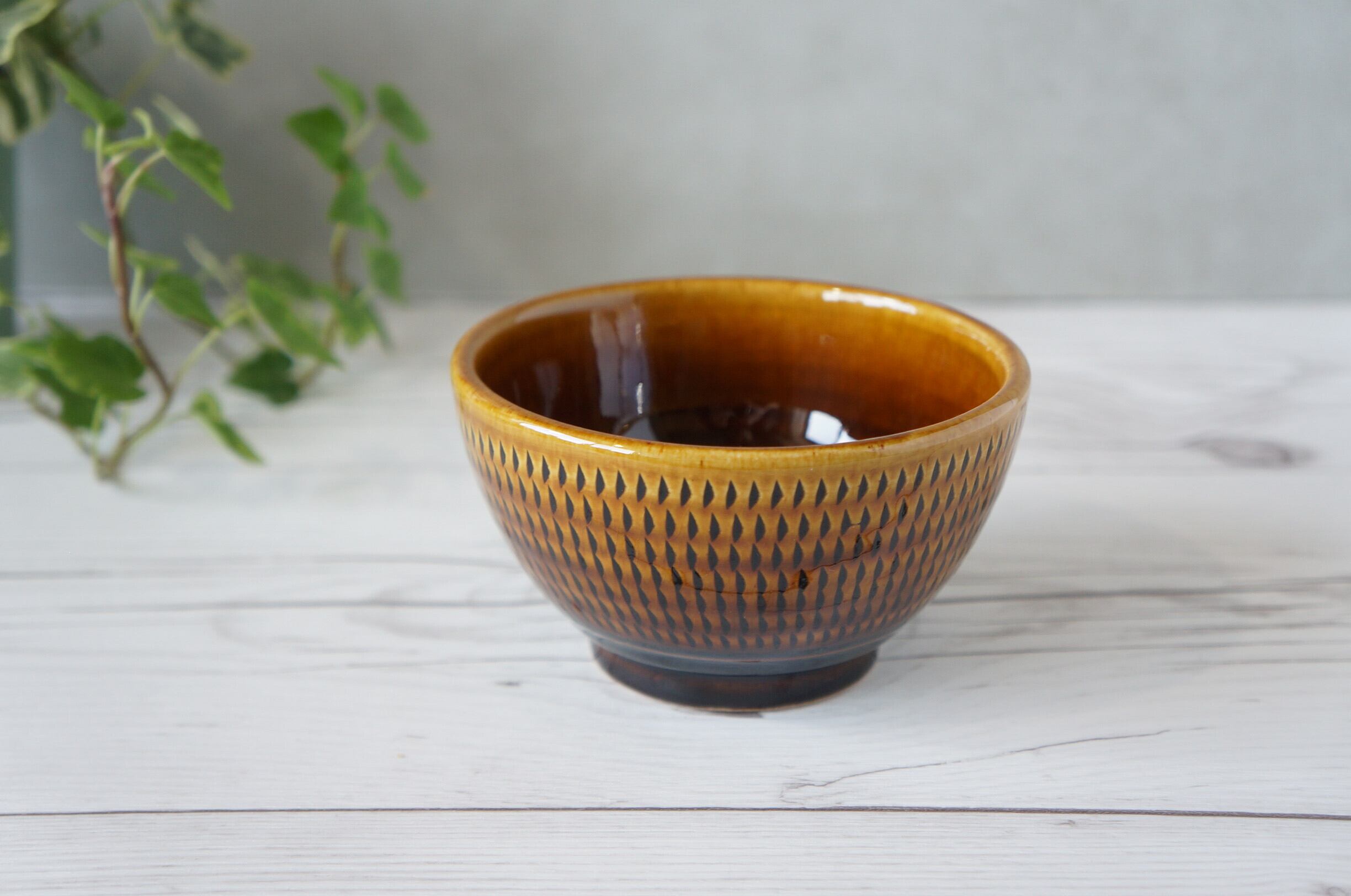 小石原焼 カネハ窯 汁碗 飴釉 ② 【23-344】